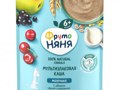 Յուղազերծված կաթի փոշի, ցորենի ալյուր, շաքարավազ, վարսակի ալյուր, եգիպտացորենի ալյուր, չոր սերուցք, եգիպտացորենի յուղ, պրեբիոտիկ ինուլին, խյուս խնձորի, խյուս սև հաղարջի, խյուս բալի, վիտամիններ (C, E, PP, պանտոտենաթթու, B2, B1, B6, A, ֆոլաթթու, D3, բիոտին, B12), հանքանյութեր (երկաթ, ցինկ, յոդ)